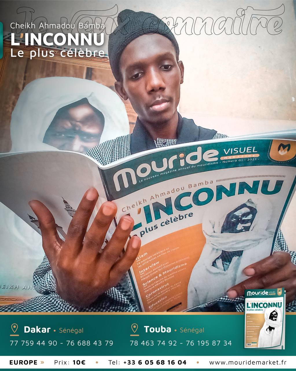 L’inconnu, le plus celèbre est le premier numéro de Mouride Visuel Magazine qui est un magazine exclusivenemet dedié à Cheikh Ahmadou Bamba pour vulgariser ses enseignements et son oeuvre à travers ses disciples, sa famille et ses compagnons.